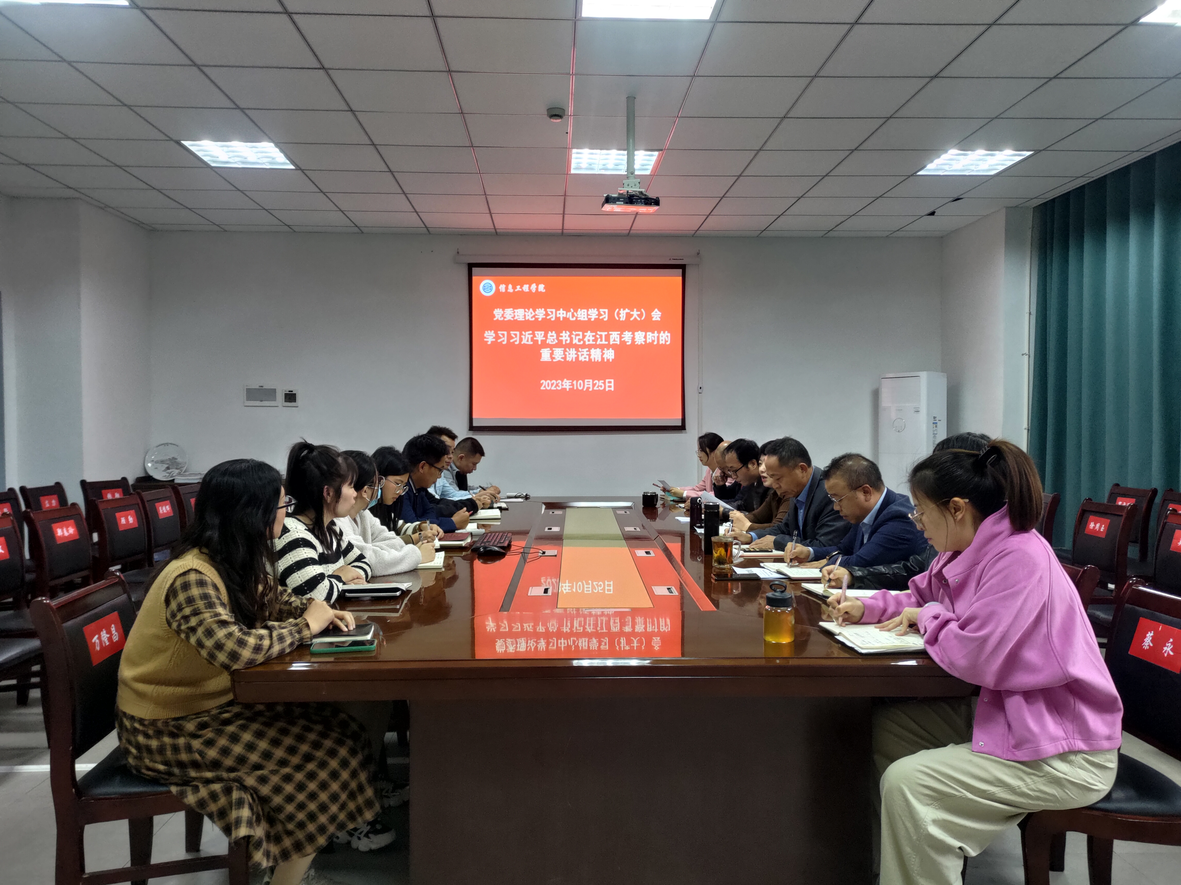 会议深入学习了习近平总书记在江西考察时的重要讲话精神、习近平总书记在进一步推动长江经济带高质量发展座谈会上的重要讲话精神,传达了学校党委理论学习中心组学习(扩大)会议精神。