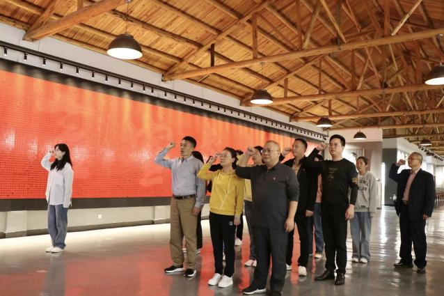 教育学院全体党员在锦泰文化红色教育基地解说员的带领下参观了“成长之路”百米红色长廊,通过图片展示、文字描述、专业讲解,全体党员重温了中国共产党的成长历史,回顾党的光辉历程和伟大成就。随后在讲解员的带领下还参观了巨幅陶瓷板画《共产党宣言》,大家纷纷表示,瓷板画将红色文化与景德镇陶瓷特色的完美融合,佩服陶瓷艺术家的工匠精神。在教工党支部组织委员钟楚婷同志领誓下,全体党员重温了入党誓词。