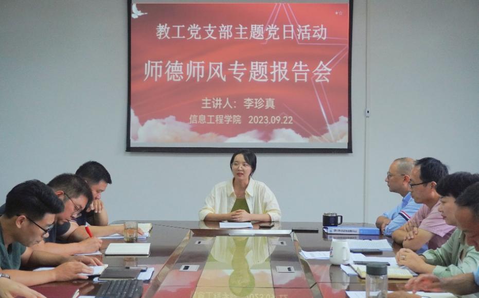 (本网讯:文|郑泉树/图|金哲源)为进一步贯彻党的教育方针,推进师德师风建设的深入开展,9月22日下午,信息工程学院教工党支部在院会议室开展师德师风教育主题党日活动。信息工程学院教工党支部书记黄威主持活动。