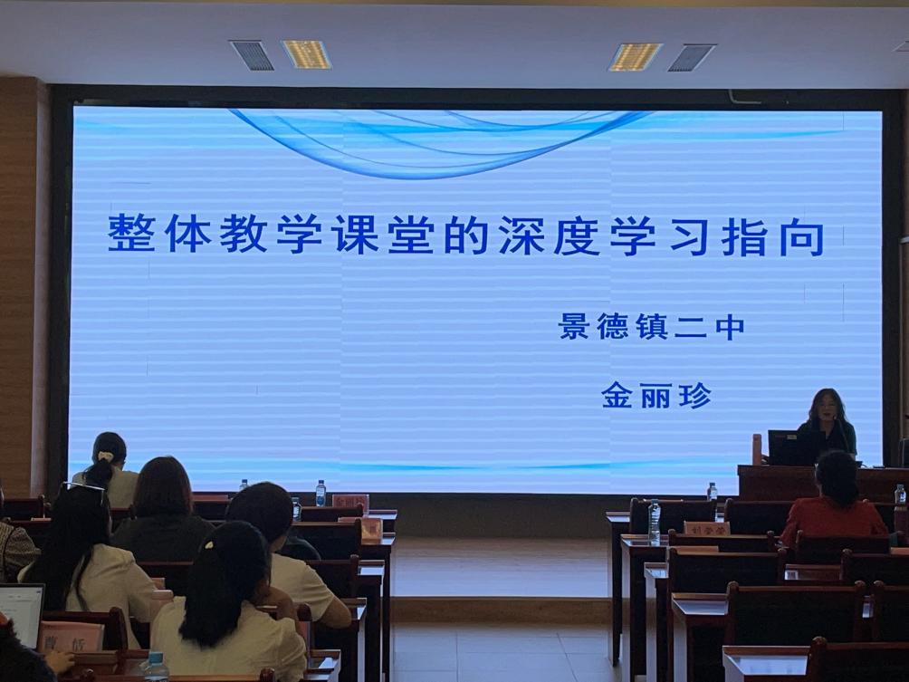 培训第一天,吕玲以“基于深度学习视域下的单元整体教学设计”为题作讲座。她从“单元教学设计的背景”“深度学习的概念及意义”“单元教学设计的原则方法及策略”“单元教学设计的案例”四个方面进行讲解,吕玲的讲座让与会教师更进一步理解到实施单元整体教学是落实学生学科核心素养的必经途径。同时,通过分享九年级第九单元的整个单元课例设计,让参训人员更加清晰地了解到在实施单元教学过程中,要设计不同层次的教学活动,从而促进学生高阶思维能力的形成,完成从学习理解、到应用实践和迁移创新的学习过程。尤其是要从深度学习的视角,设计引领学生对文本进行深度加工、深度理解和深度表达的教学活动,从而充分调动学生的主观能动性,更好地帮助其形成正确的价值观。