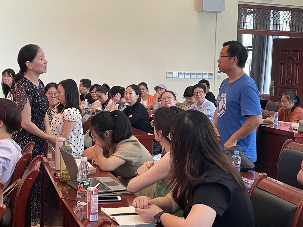 8月15日上午,金丽珍作了题为“整体教学课堂的深度学习指向”的讲座,对“如何在教学中实现整体教学课堂的深度学习”这一方面进行阐述,打开了与会人员的思路。她强调在“新课标”中学生核心素养发展的重要性,教师应通过对课程单元内容的有机整合,使学生由浅入深地认知学习,逐渐形成完整的知识体系,进而实现迁移提升,并引领学生围绕具有挑战性的单元主题,全身心积极参与、深度学习,在层层递进的整合教学活动中感知提升。她表示,作为一线教师,要切实根据学校的课程需求和学生的发展需要,让英语教学从浅层的、机械的语言识记性学习转向以发展语言能力为核心,培养学生高阶思维品质、多元文化意识和终身学习能力的深层学习。大家听后纷纷发言,会场互动气氛热烈。