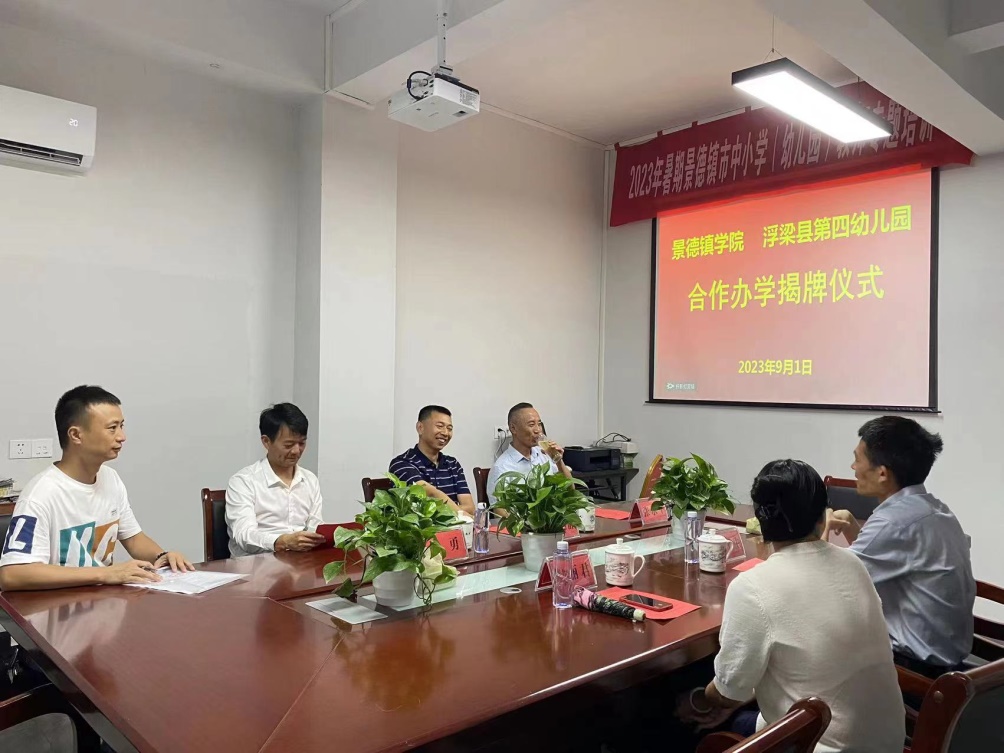 吴黎静指出,景德镇学院作为一所坐落在浮梁县的本科高校,是学前教育及其它基础教育教师培养的摇篮,几十年来为国家和地方培养了大批的教育人才。浮梁县第四幼儿园临近景德镇学院,以打造小而精的县城独立公办园为目标,将以此次合作共建为契机,争取到学院更多的专业指导及教育科研方面的帮助。同时,他也希望景德镇学院能不断加强与浮梁县其它基础教育领域的合作,促进浮梁县基础教育质量水平的提升。