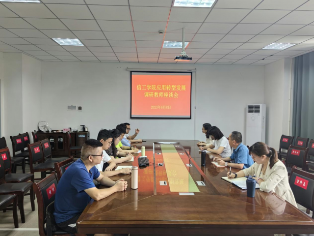 (本网讯:信工轩)为扎实推进学习贯彻习近平新时代中国特色社会主义思想主题教育走深走实,全面落实省教育厅《关于开展普通高校本科专业结构优化调整专项行动的通知》精神,落实校党委副书记、校长陈运平在第二届五次双代会上报告《凝心聚力、真抓实干,为推进示范应用型本科建设和高质量发展而努力奋斗》的要求,进一步推动信工学院应用型转型发展。近日,信工学院行政负责人黄顺发在学院会议室召开了应用转型发展调研座谈会。