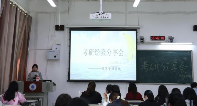 (本网讯:谢慧萍)为了让学生们充分认识考研形势,进一步了解本专业的就业方向和发展前景,帮助大家更好地明确自己的目标与方向。5月26日,经济管理学院在3301教室举办考研分享会。
