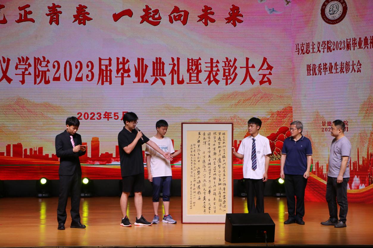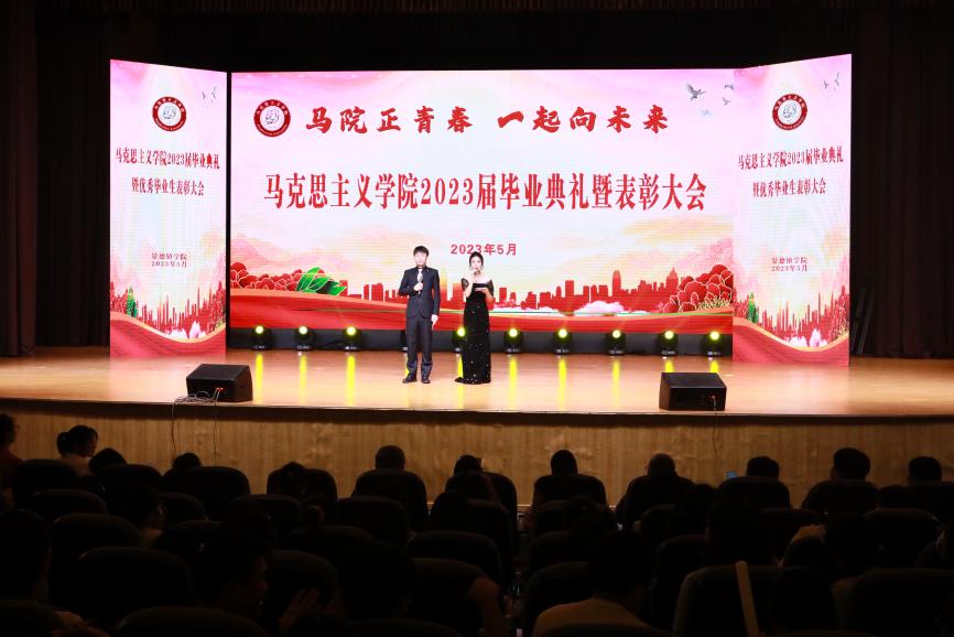 马克思主义学院全体教师、2023届毕业生、马院各级在校生参加本次典礼,典礼由赖培金、胡汝洁同学主持。