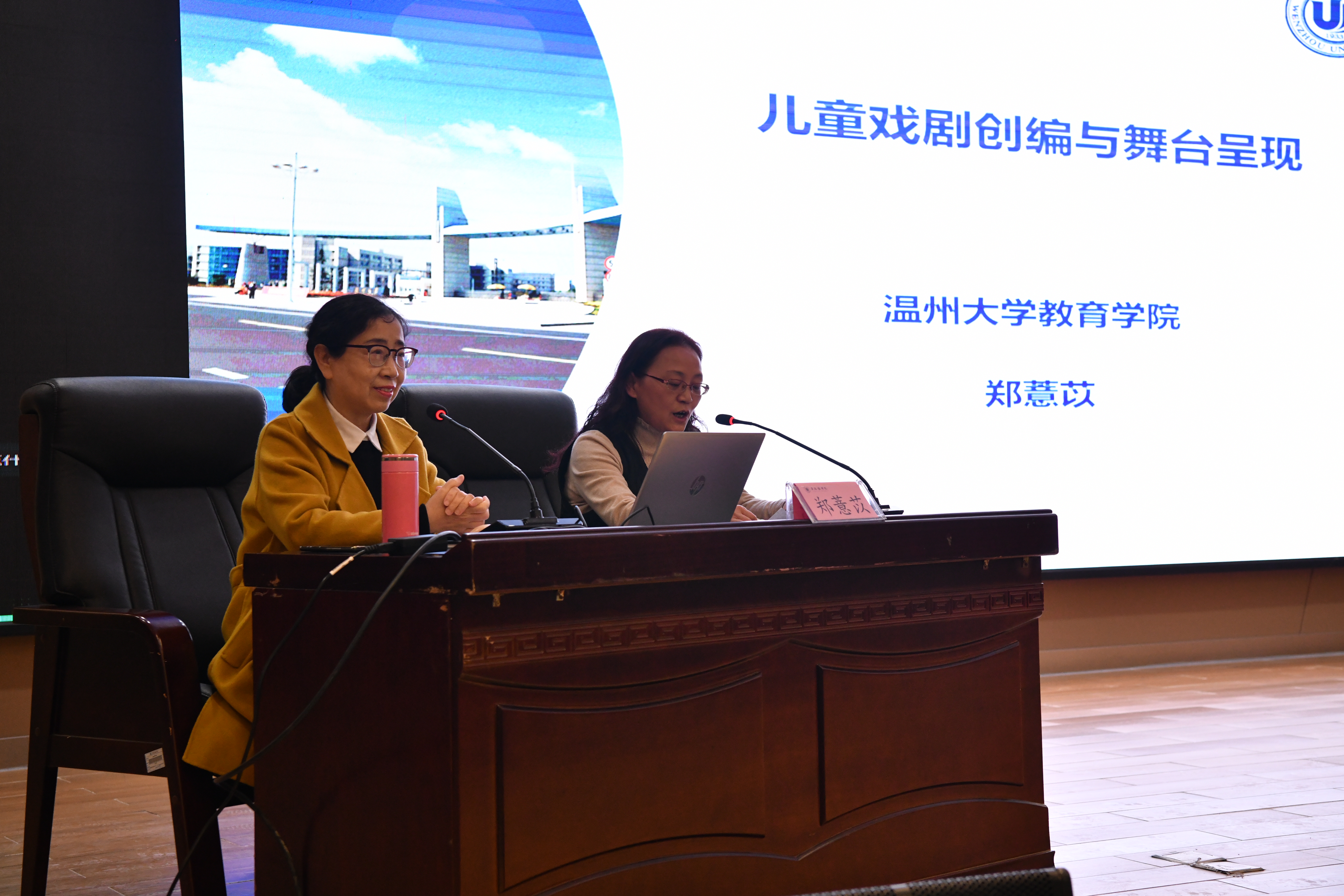 郑薏苡以自身参与编排与评鉴儿童戏剧的经历为例,分别从儿童戏剧的内涵与价值、儿童戏剧的创编以及完美的舞台呈现三个方面进行深入浅出的讲授,她表示,舞台戏剧是一门综合艺术,要以舞台表演为中心,借助好音乐、服装、道具、舞美等进行表演;儿童戏剧是学前教育专业的优势,一定要增强自信心,善于创新,做到既要有教育意义,又要有审美效果,带给孩子们完全不同的体验。
