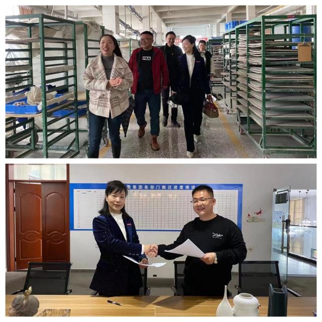 (本网讯:余珊珊)为加强校企合作、进一步促进学生就业,近日,外国语学院党委书记吴芹、副书记黄华、商务英语系主任、实验中心主任、专任教师代表前往景德镇市贝汉美陶瓷有限公司开展访企拓岗促就业专项行动,双方就产教融合、校企合作发展路径及校园专场招聘等方面进行了探讨,并签署了校企合作协议。