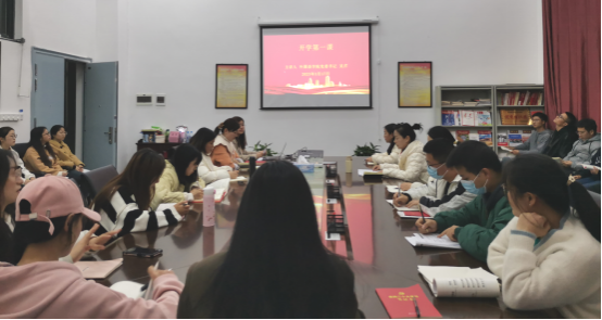 (本网讯:余珊珊)3月17日下午,外国语学院党委书记吴芹在学院党员活动室讲授“开学第一课”.