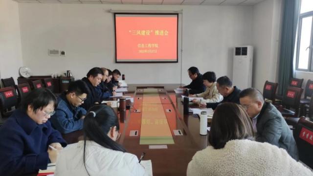 (本网讯:占俊)为落实学校“三风”建设要求,2月27日,信工学院召开“三风”建设推进会,以转作风、强教风、正学风为抓手,全面推进学院高质量发展。信工学院党委书记练缤艳主持会议。