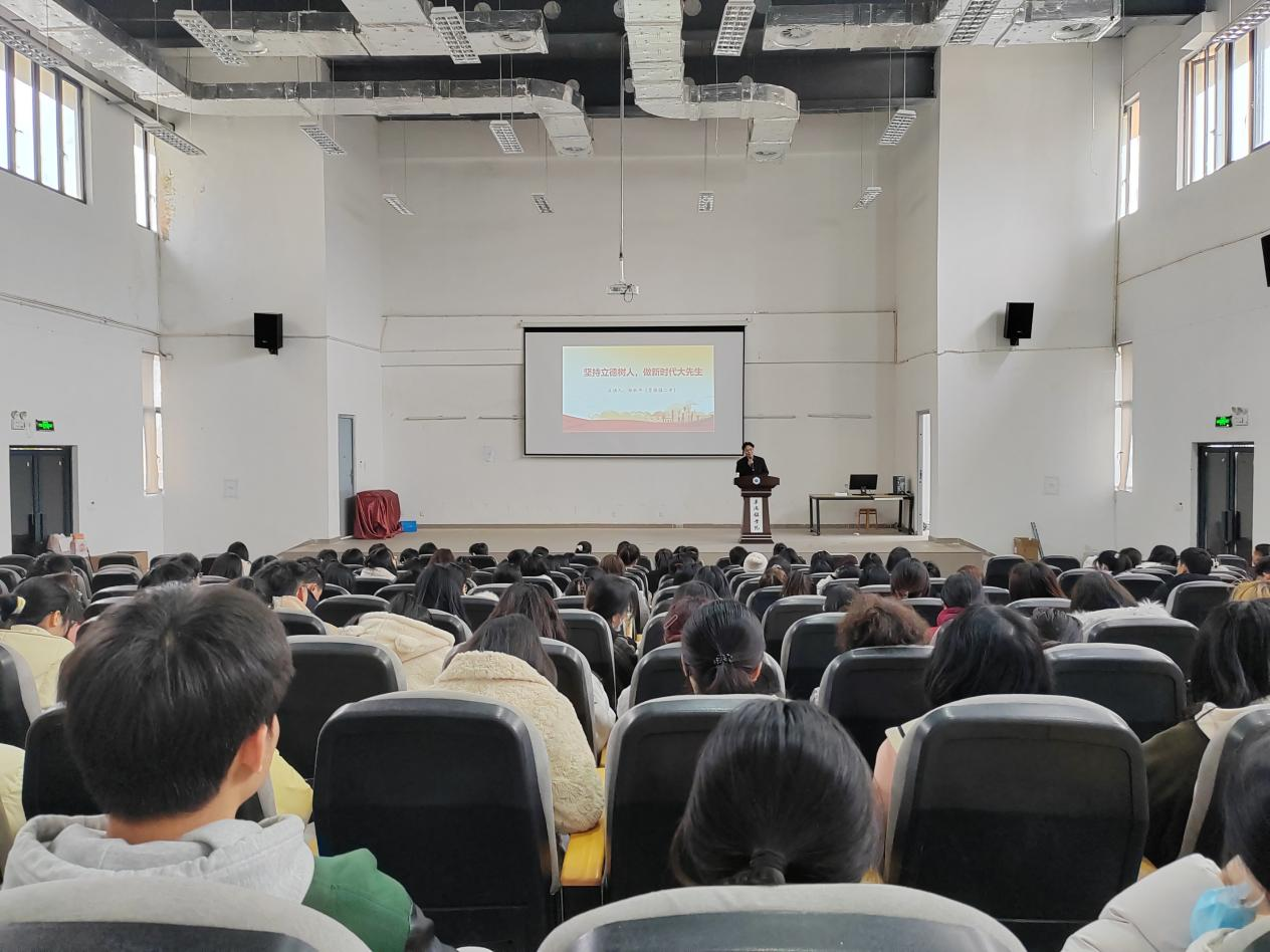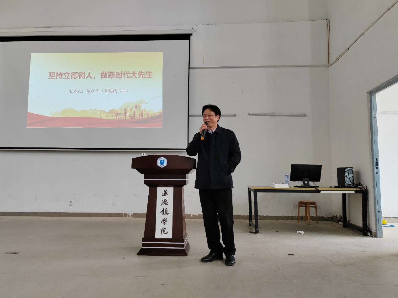 邹秋平围绕新时代“大先生”的含义、如何成为“大先生”等内容,通过鲜活的案例进行讲述,他表示,“大先生”不仅要学高为师,更要身正为范,做到心中有大爱、大境界和大智慧,作为师范生要将成为”大先生“作为自己的发展目标,要始终坚持“四个统一”,即坚持“讲政治”与“高质量”相统一;坚持“教书”与“育人”相统一;坚持“成功”与“成才”相统一;坚持“大楼”与“大师”相统一。他鼓励同学们要将个人理想融入国家和民族的发展事业中,不畏艰难险阻,勇担时代使命。