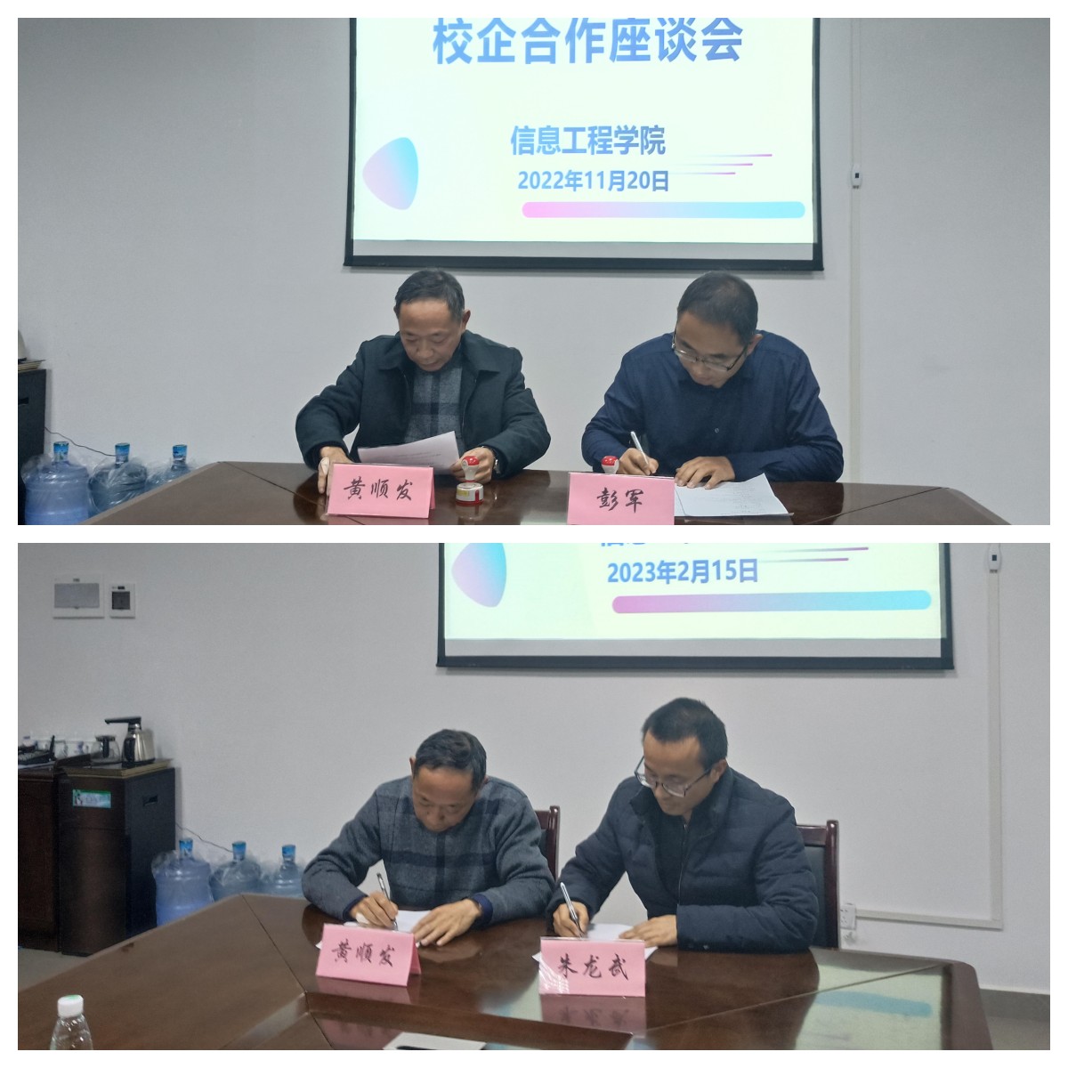 会上,信息工程学院领导班子还与江西景腾科技有限公司代表就入驻学校产教大楼后的部署工作进行了初步的探讨和规划。最后,信息工程学院与江西善堂网络科技有限公司现场签订了校企合作框架协议。