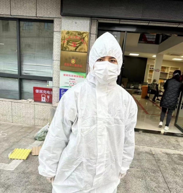 在校外实习的姚刚同学,在接到疫情通知的第一时间积极配合社区的疫情防控要求,开始了居家隔离和每日核酸检测。在当天排队做核酸的时候,得知社区志愿者稀少,抗疫人员紧缺,便主动自发去街道处申请当一名抗疫志愿者,配合防疫团队,在古镇天御小区开启了他的“大白”抗疫工作。听从抗疫团队领导安排,进行有序防疫指挥工作,配合团队对当地居民进行有序的体温测试,运输抗疫物资,维护核酸队列秩序,劝解当地居民进行有效的居家隔离,为早日战胜疫情贡献自己的一份力量!