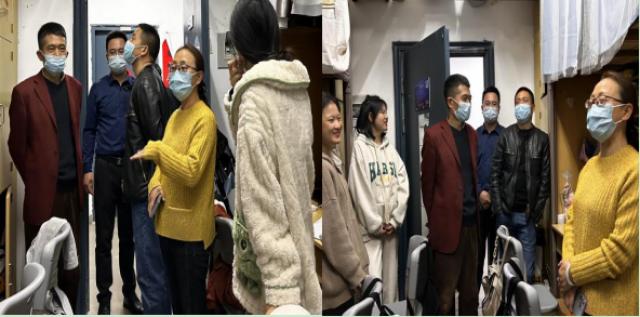 (本网讯:曹玲玲)为切实做好疫情防控形势下学生管理工作,了解教育学院学子在宿舍的生活、学习、思想情况,近日,教育学院党委书记李莉、副院长黄书生、领导班子成员汪潇带领学院驻校老师孟伟、徐涛、康传凯走访学生宿舍,为学生送去关心和问候。