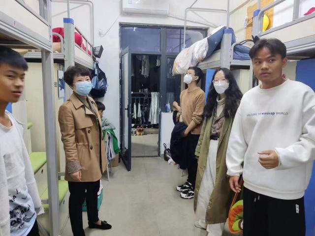 信工学院党委书记练缤艳带领辅导员李思霖,青年教师吴鹏、余雪、刘波走访寝室,与同学们进行亲切交流,了解同学们的学习生活情况,为同学们答疑解惑,叮嘱学生搞好宿舍环境卫生,紧密配合学校疫情防控工作,落实核酸检测,确保不漏一人,并做好疫情防控下学生的健康监测和心理疏导。他们心系学生,守护学生,疫情下的温暖无处不在。