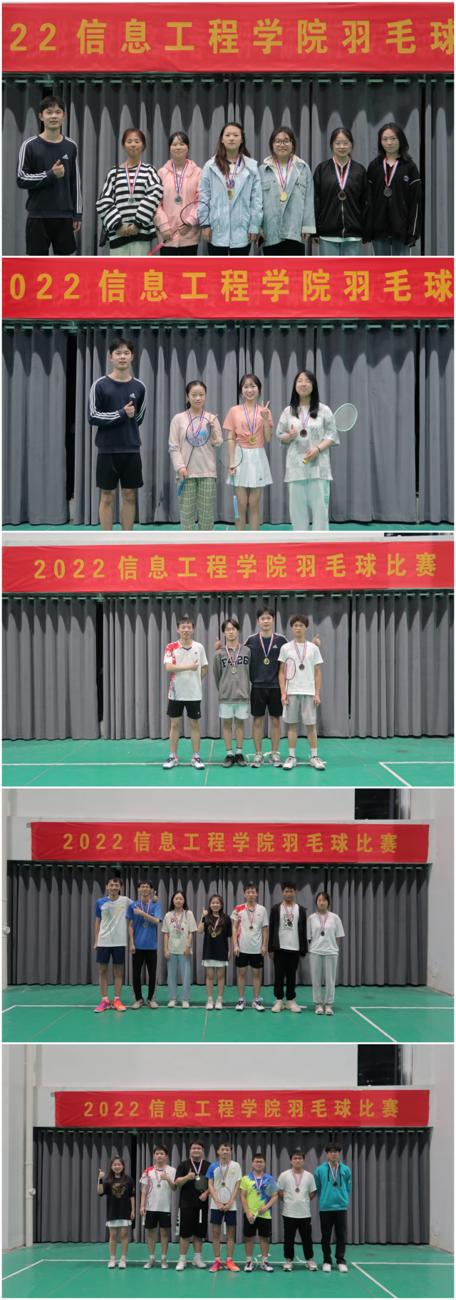 本次比赛共有120余选手参加,球赛分为男单、女单、男双、女双、混双五个项目,比赛分为5组随机抽签进行对决,小组赛1局定胜负淘汰制,半决赛和决赛3局2胜晋级制,最后决出各项目的冠、亚、季军。赛前,选手们利用课余时间在球场上挥汗如雨,奋力提高球技,以最佳状态迎接比赛;赛中,选手们胜势连绵攻不断,杀球、勾球、扑球……做到了球不落地,永不放弃。一场场比赛,酣畅淋漓,彰显了青春不败的体育精神;赛后,选手们击掌致意,交流心得,相约下个赛场再见。