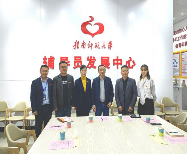 上午,吴芹一行前往赣南师范大学学工处,与赣南师范大学学工处崔福生处长、黄晖工作室负责人黄晖教授等人员进行了座谈。崔福生首先介绍了赣南师范大学学工处的机构设置及人员构成,然后从学生工作基本情况、红色文化育人、红色班级建设、辅导员工作室建设等方面经验和做法进行介绍。崔福生指出,近年来赣南师大学工处利用赣南丰富的红色文化资源,以红色文化学院为平台,以“四红”育人模式为理念,以红色班级创建为抓手,通过构建“十个一”工作体系和建立“五融入”工作机制,把赣南丰富的红色文化资源转化为优质的育人资源,实现了全员、全过程、全方位红色文化育人,取得可喜的成绩。黄晖教授围绕辅导员“沐阳”工作室建设、“十个一”带班法就辅导员队伍建设、学生思想引领、网络思想政治教育等方面介绍了典型做法。双方分别还就校园文化建设、辅导员和班主任带班工作进行了深入的交流。