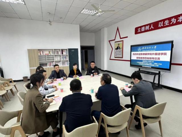 近日,外国语学院党委书记吴芹带领本院人员一行4人赴赣南师范大学就学生工作、辅导员工作、校园文化建设、红色班级建设、学科建设、人才培养、师范专业认证等工作开展学习交流。