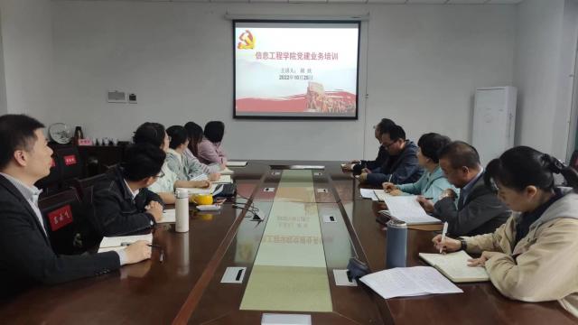 (本网讯:胡欣)为不断提升党建工作质量,10月25日上午,信息工程学院在院会议室召开党建业务培训会。党委副书记万涛、副院长李香泉及各支部支委参加会议,会议由党委书记练缤艳主持。