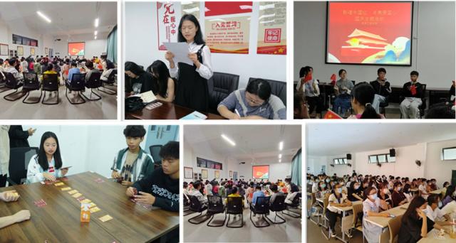 “喜迎二十大、永远跟党走、奋进新征程”红色经典读书会活动,通过阅读红色经典和分享读书感悟等形式,了解革命历史;“欢度国庆节,喜迎二十大”红色观影活动,通过观看影片《高山上的花环》,引导学生学习先辈艰苦奋斗,无私奉献的优良品质,持续推进红色文化教育;“喜迎二十大 青春心向党”红色桌游活动通过集教育性与趣味性为一体的游戏形式,让学生沉浸式感受中国共产党百年历史的艰辛与荣耀;“歌唱中国红 点亮爱国心”红歌传唱主题活动通过“持国旗,定格最美中国红”、“唱红歌,抒发最深爱国心”等环节,将对党、对国家的热爱融入到歌声中,师生共同用歌声向祖国深情“表白”。