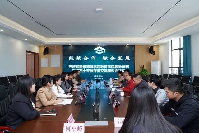 会上,余拥梅代表浮梁四小对教育学院领导老师的到来表示热烈欢迎,在简要介绍了浮梁四小的发展状况后,她表示,希望与教育学院在学生社团活动开展、教育科研与家庭教育指导等方面深入合作。浮梁四小林雪凤表达了与教育学院多方面合作的热切期待,希望教育学院能够派专业老师帮助进行心理健康课程建设、劳动教育课程的理论提升,并在智慧校园的进一步开发建设和青年教师培养等方面提供支持。