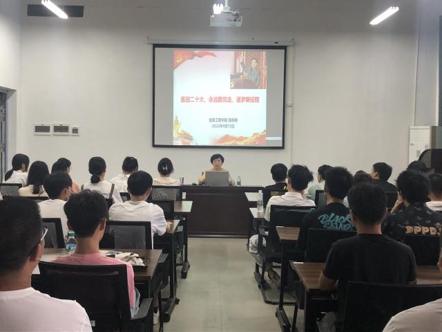 专题党课上,练缤艳还就大学中常见的“关于修养、关于适应、关于挫折、关于尝试”四个话题与新生们进行了交流探讨,她希望同学们在大学四年里努力做到知行合一,求实创新,以一种阳光、积极、向上的姿态度过大学的每一天,在最美的时光,成就最好的自己,扣好人生的第一粒扣子,在实干中书写鲲鹏击浪的青春华章!