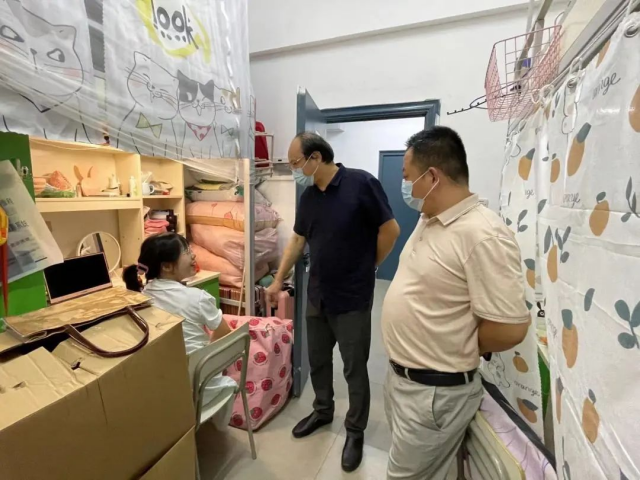 全体人员深入一线,走进寝室、教室,和返校的同学们话家常。老师们亲切地询问了同学们暑假生活过的怎么样,新学期的学习计划是什么,同时提醒同学们在常态化疫情防控时期要注意个人卫生,勤洗手常通风,牢固树立安全防患意识,严禁在寝室使用违规电器。同学们也畅所欲言,表达了对新学年的美好憧憬。