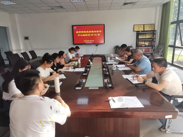 (本网讯:江霞琴)为深入学习贯彻习近平总书记关于高等教育的重要论述,深刻领会江西省关于推动新时代江西高等教育内涵式高质量发展的核心要义,9月9日下午,教育学院于党员会议室召开党委理论学习中心组学习(扩大)会。会议由党委书记李莉主持,行政负责人冯兵,副院长黄书生,领导班子成员汪潇参加会议。