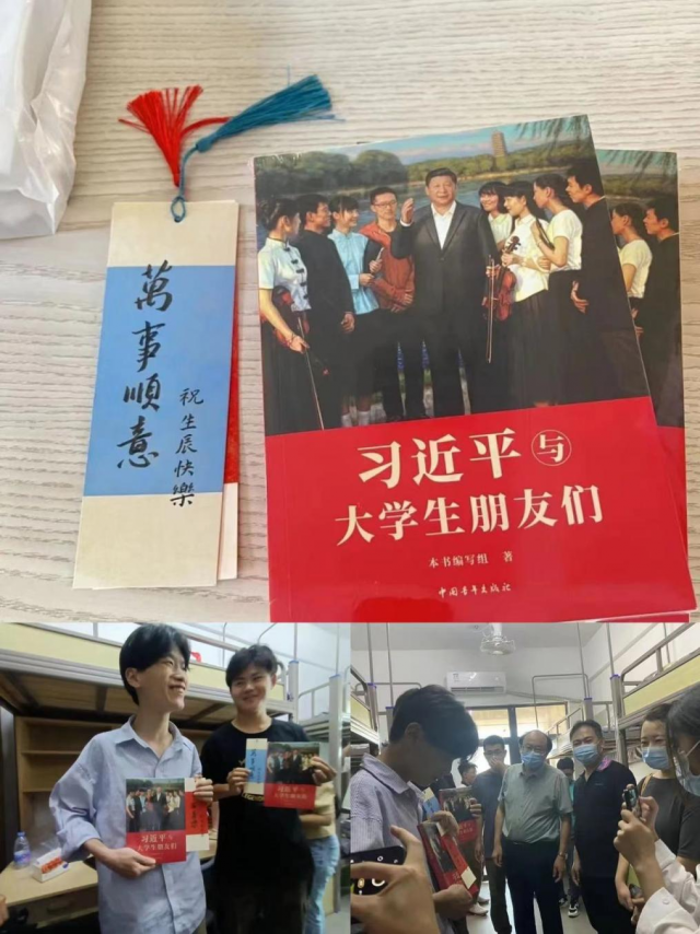 生日会现场,全体人员与2022级新生共同唱响生日歌、分享生日蛋糕并合影留念,现场气氛温馨欢乐。学院党委书记赵雪政、院长方漫分别给每位同学赠送了一册《习近平与大学生朋友们》书籍,希望大家从隆重的仪式感中体会生日的意义,志存高远,勤学善思,努力使自己成长为担当民族复兴大任的时代新人。