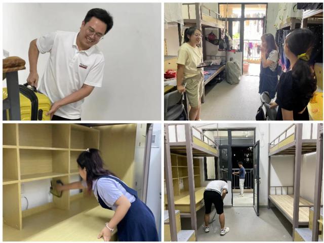 志愿招募,寝室清扫。为了让毕业班学生顺利入住新寝室,教育学院学生党支部和团委于9月15日发起志愿者招募活动,为毕业班的学长学姐们提供舒适干净的寝室环境。发展对象、入党积极分子、共青团员、学生干部和广大青年志愿者同学们积极报名、广泛参与,认真清扫着寝室卫生、仔细擦洗着寝室桌椅,给毕业班学长学姐们温馨有爱的新寝室。