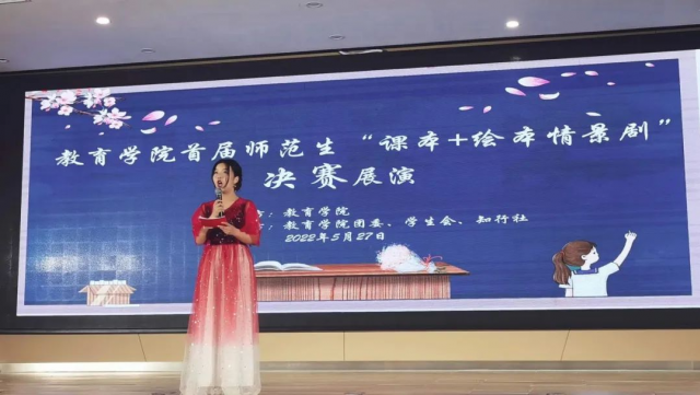 (本网讯:文|江霞琴/图|罗艺洋、汪盈、陈圆)为加强我院师范生师范专业技能的培养,落实和深化基础教育新课程改革理念,促进基础教育课堂教学改革,培养学生的综合创新素质。5月27日下午,教育学院师范专业首届“课本•绘本情景剧”决赛展演活动在图文报告厅进行。