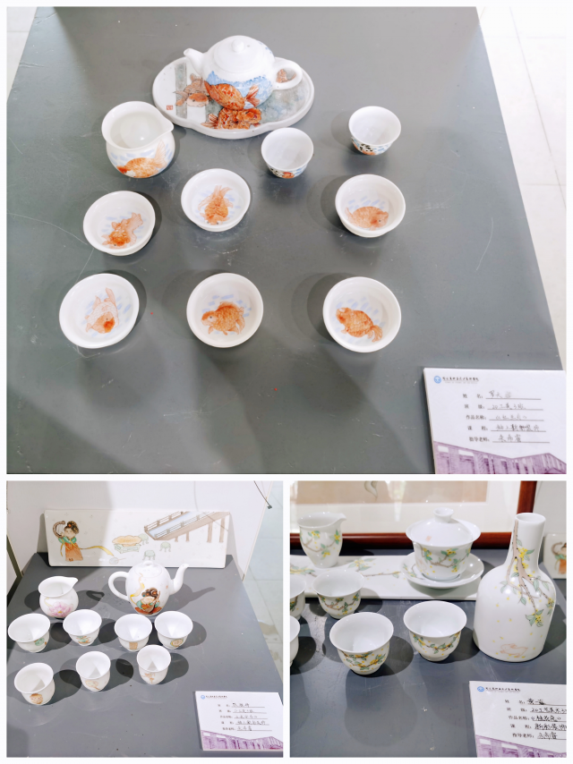 在艺术学院的大力支持与指导老师朱希睿悉心指导下,20工美3班张雅婷同学创作的茶具作品《长安乐》、黄一菲同学创作的茶具作品《桂花兔》、罗天尼同学创作的茶具作品《红兰寿》被校工会教工之家收藏。