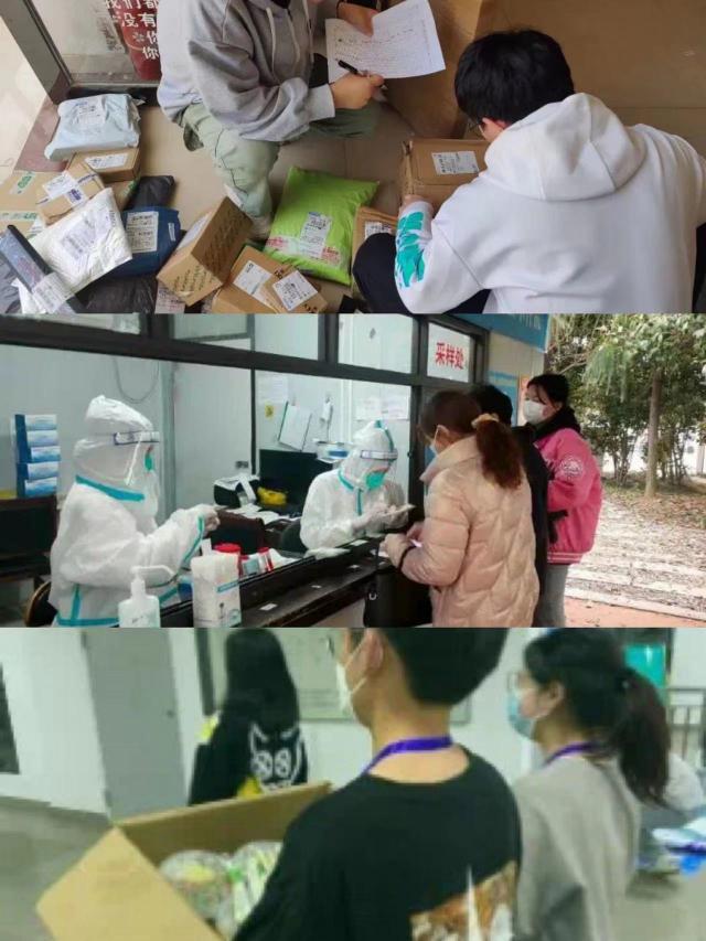 组建志愿服务队,学生党员、团委学生会干部纷纷响应,在做好个人防护的同时投身疫情防控志愿服务。他们分工协作、坚守岗位,给居寝健康监测的同学配送早、中、晚餐,积极发挥学生组织自我教育、自我管理、自我服务的作用,以实际行动彰显新时代青年的责任担当。辅导员、班主任、党员教师主动承担“快递员”“送餐员”“就诊陪护员”的角色,为学生送去及时雨,服务工作温馨暖心。