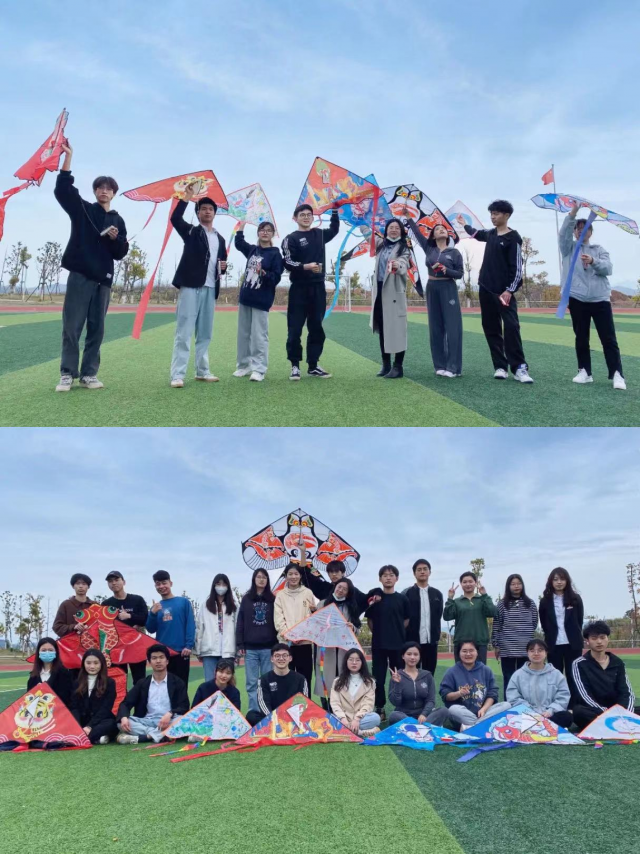 最后,大家来到田径场,在风筝上写上对革命先烈或亲人的寄语、对美好生活的祝愿、对伟大祖国的歌颂,将一只只载满心愿的风筝放飞蓝天。