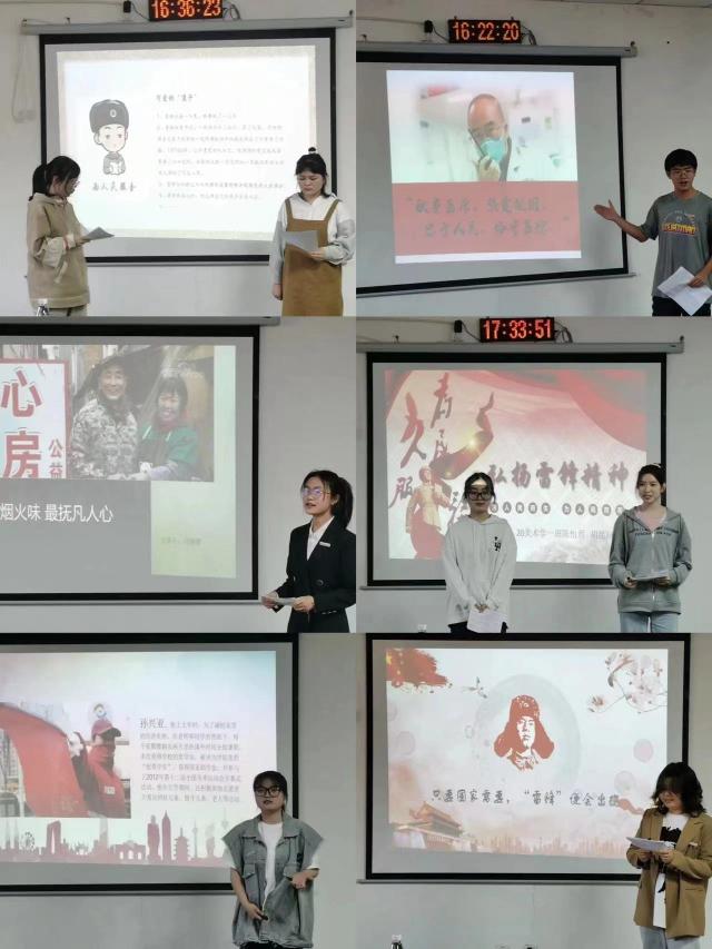 (本网讯:图|李晓婷、龚智超/文|初雅琪、喻茜)为大力弘扬新时代雷锋精神,培育和践行社会主义核心价值观,3月15日下午,艺术学院“讲身边雷锋故事,做新时代文明青年”演讲比赛在党员活动室举行。本次活动由21产设二班李文瑞同学主持。