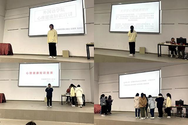 (本网讯:万丽佳)为提高学生对心理健康重要性的认识,丰富学生心理健康知识,11月26日晚,外国语学院心理健康知识宣讲及竞赛活动在院报告厅举行。