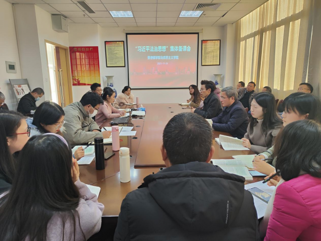 (本网讯:图|刘鸿毅/文|王佳惠)为深入学习“习近平法治思想”,扎实推进“习近平法治思想”融入日常思政课教学工作。11月24日下午,马克思主义学院“习近平法治思想”集体备课会在学院会议室召开,党总支书记郝海旺出席会议,院长江旺龙主持会议。