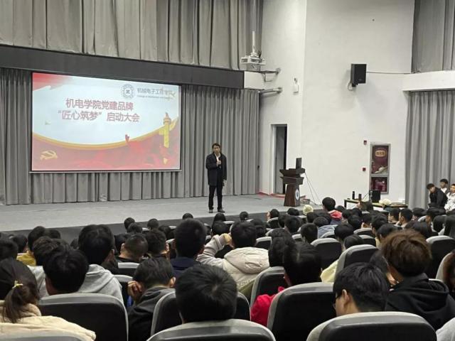 (本网讯:文|杨琪/图|陈志星)为进一步深入开展党史学习教育,回顾中国共产党百年奋斗的光辉历程,展望中华民族伟大复兴的光明前景,11月9日晚,机电学院党建品牌“匠心筑梦”启动大会在第二报告厅召开,党总支副书记毛鹏飞主持。