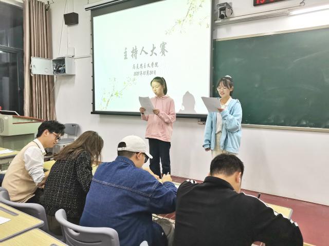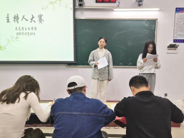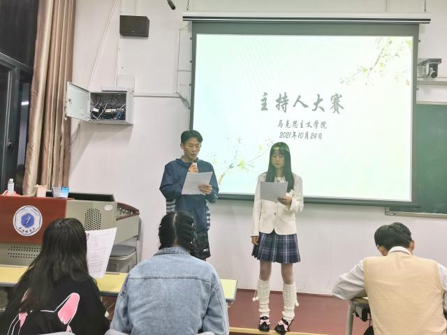 (本网讯:图|何莉红/文|王佳惠)为丰富校园文化生活,展现21级新生积极向上的精神风貌,10月24日晚,马院21级新生主持人大赛在1401教室举行。