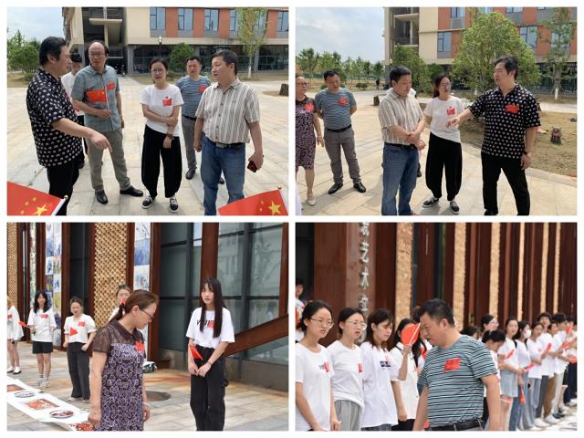 艺术学院党总支书记赵雪政、院长方漫等院领导及相关教师现场参观“绘百米长卷,献建党百年”成果展示。