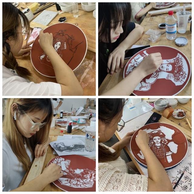 (本网讯:图|曾子晴、郭雅琴、占佳怡、王紫阳、杨晓惠/文|曾子晴、朱寒)为深入推进党史学习教育,艺术学院积极推进课程思政进班级,将党史学习教育和专业课教学有机结合起来。高颖老师将党史学习教育融入《陶瓷釉上彩》课程设计,引导学生用作品抒发爱党爱国情怀,诠释“56个民族心连心”。