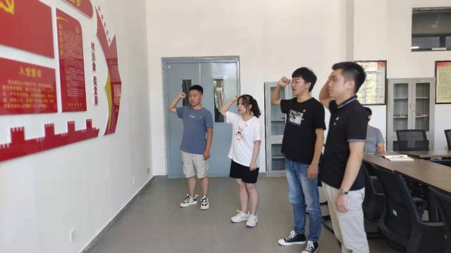 活动在入党宣誓仪式中拉开帷幕。在辅导员江川老师的带领下,新党员们高举右手,庄严宣誓,用铿锵有力的誓言表达对党的无限忠诚。接着,辅导员欧阳嫄老师为大家讲授“五四精神唤醒民众”主题党课,回顾“五四运动”,让大家身临其境感受到1919年五四爱国青年的满腔热情。最后,组织大家进行党史知识闭卷测试,以考促学,进一步推动党史学习教育走深走实。