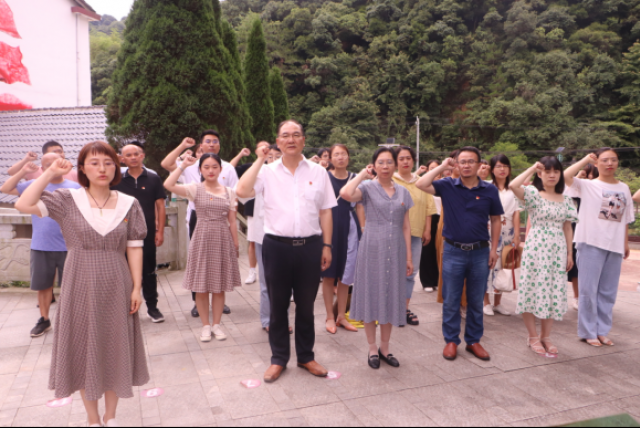 在荷塘乡革命烈士纪念塔前,面对鲜红的党旗,全体党员高举右拳重温入党誓词;在荷塘红色文化教育展馆内,大家深刻了解到50多年前农垦干部群众把山高水冷、地瘦土瘠的穷山沟,建设成“社会主义时代的南泥湾”,把一穷二白的荷塘建设成为“工业学大庆、农业学大寨、农垦学荷塘”样板农场的艰苦卓绝的建设事业;在殊源坞红色文化馆,大家参观了荷塘农垦文化暨非遗展览,通过现场教学,真实感受新时代的“愚公”迎难而上、自力更生的“荷塘精神”。