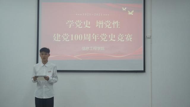(本网讯:文|彭冠文/图|张晶)为深入推动党史学习教育,让党史学习教育真正做到入脑、入心,6月2日晚,信工学院“学党史,增党性”党史知识竞答活动在党员活动室举行,活动由20计科1班胡效敏同学主持。