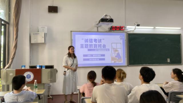 (本网讯:万丽佳)为了进一步加强同学的诚信意识和行为,6月15日下午,外国语学院19级商英一班召开“诚信考试”主题班会,辅导员万丽佳老师主持。