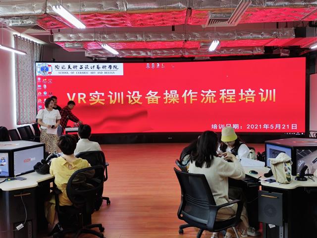 (本网讯:图|徐凯/文|周婧、周姗)为优化教学媒体和教学方法,提升实训设备使用率,5月21日,艺术学院VR实训设备培训会在艺术楼TR203B-VR实训室举行,景德镇百陶会陶艺装备有限公司专业技术人员苏鹏、王阳泰主讲。