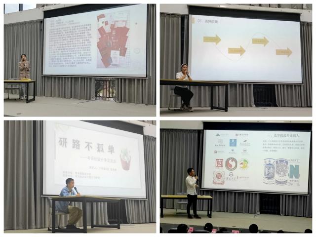 会议邀请马兆银、周坤、伍佳鹏、胡耀瑶四位考研通过的同学结合自已考研经历,从复习、应试两个方面,对近年来考研基本情况、考研科目、搜寻报考院校信息的途径分享了他们成功的经验。希望同学们确定目标、定好计划,在考研路上坚持到底并取得满意的成绩。