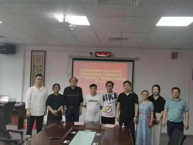 艺术学院全体领导班子成员、学生工作科长胡文毅、景德镇水流星陶瓷文化有限公司董事长钟忠、总经理郑家海出席签约仪式。