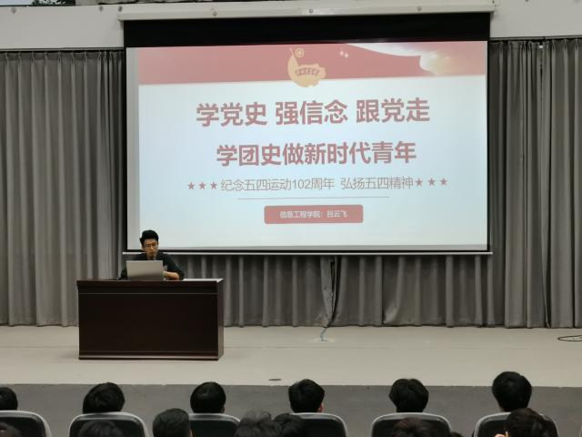 (本网讯:图|黄翔文|曾乐辰)为扎实开展党史学习教育,增强同学们对党史的理解,坚定跟党走的决心。5月12日晚,信息工程学院开展“学党史、强信念、跟党走,学团史做新时代青年”主题团课,团课由信息工程学院团委书记吕云飞讲授。