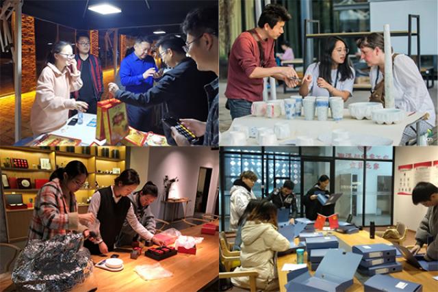 同学们每天早早来到陶溪川天工开物集市江西非物质文化遗产品售卖点,从仓库中搬运出非遗产品及练摊的桌椅,并按要求将其一一摆放到位。为顺利卖出商品,同学们提前做了不少功课,熟悉售卖产品,寻找产品特色、亮点,准备介绍文稿……当有顾客光临时,同学们积极介绍、努力售卖。摆摊结束,同学们还要把剩余货物、桌椅等运送回指定仓库,并做好销售记录。