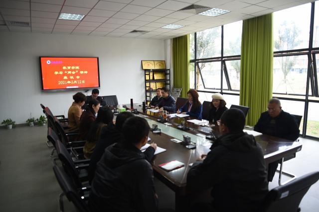 (本网讯:江霞琴、李婷婷)为深入贯彻学习全国“两会”精神。3月12日下午,教育学院全国“两会”精神学习座谈会在党员会议室召开。副书记徐圣辉主持会议。